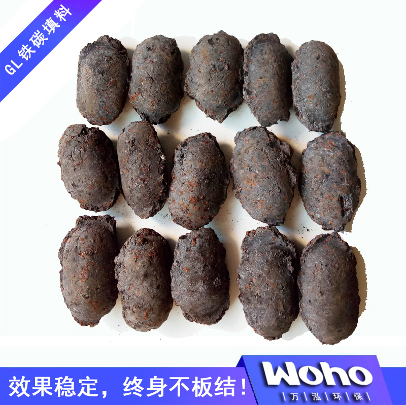 1、GL鐵碳填料由鐵、碳、GL催化劑、貴金屬催化劑、活化劑、保護(hù)劑經(jīng)充分混合,通過天然氣《高溫數(shù)字隔離燒結(jié)技術(shù)》,形成同素異構(gòu)灰白色一體化結(jié)晶鐵碳填料素體,保證每一顆鐵碳填料表面鐵離子氧化膜層層剝離,杜絕填料鈍化膜和板結(jié)層的形成,從而徹底根本性的解決填料鈍化板結(jié)這一弊病,從而持續(xù)保證均勻的“原電池”高效反應(yīng)。